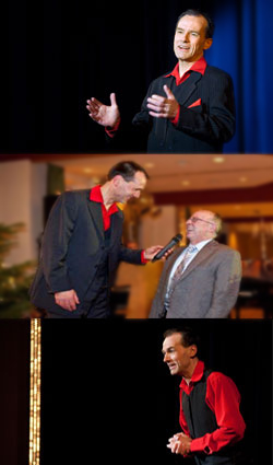 Wo es passt – und es passt sehr oft ... – verleiht er mit einem musikalischen, komischen Act dem Event einen besonderen Glanz.