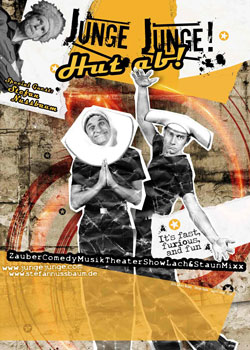 Hut ab! ist der gewagte Mix aus erstaunlicher und mitreißender Zauberkunst des Zauberduos JUNGE JUNGE! und Stefan Nussbaums quirliger Musik–Comedy.
